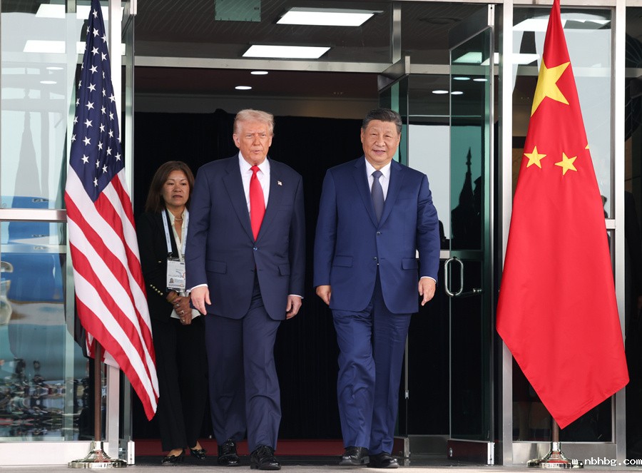 当地时间10月30日,国家主席习近平在釜山同美国总统特朗普举行会晤。
